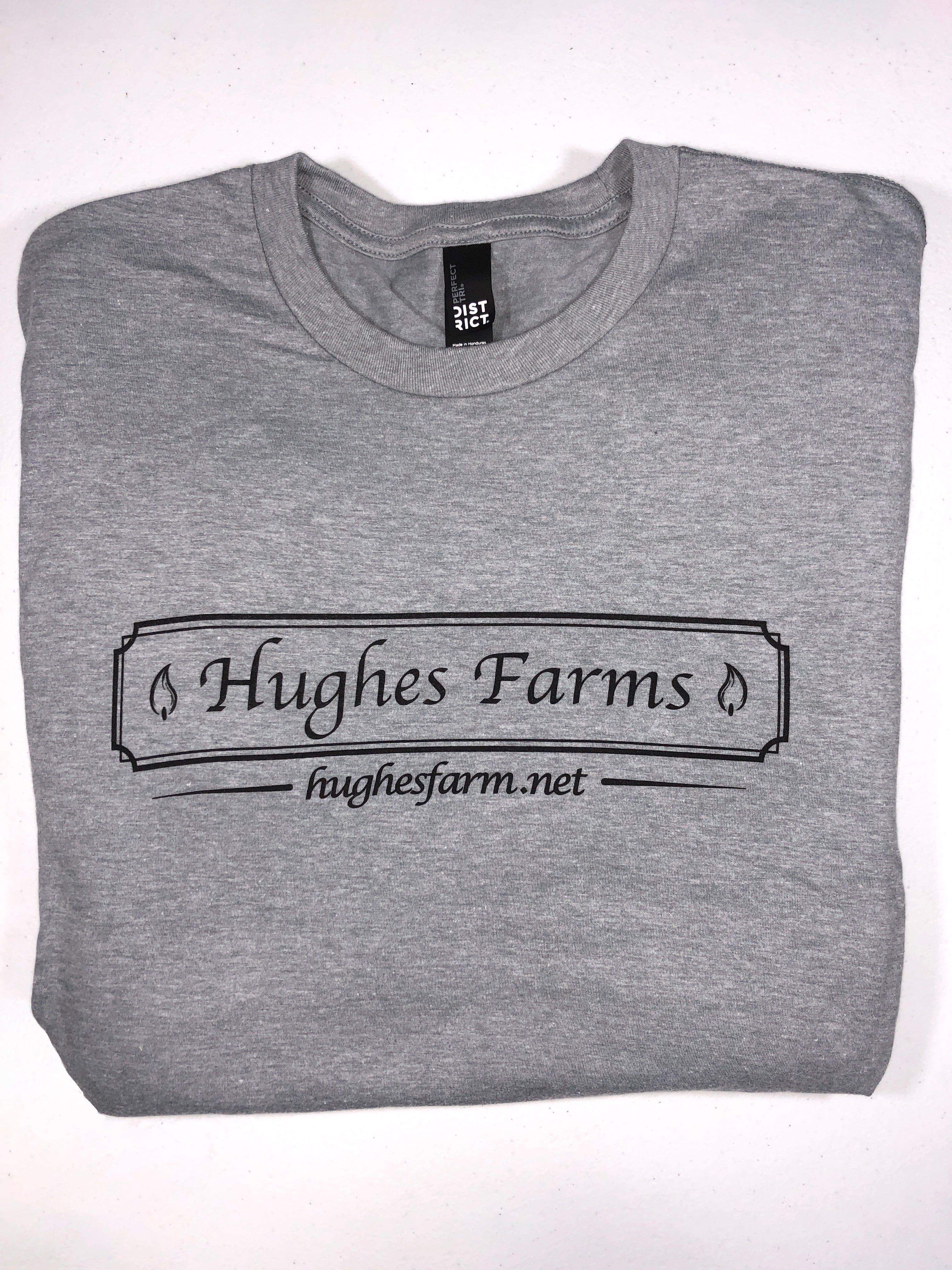 Shop ShirtsHughes Farms T-Shirt made from 50% Polyester, 25% Cotton, 25% Rayon is a Light gray and is soft and comfortable.